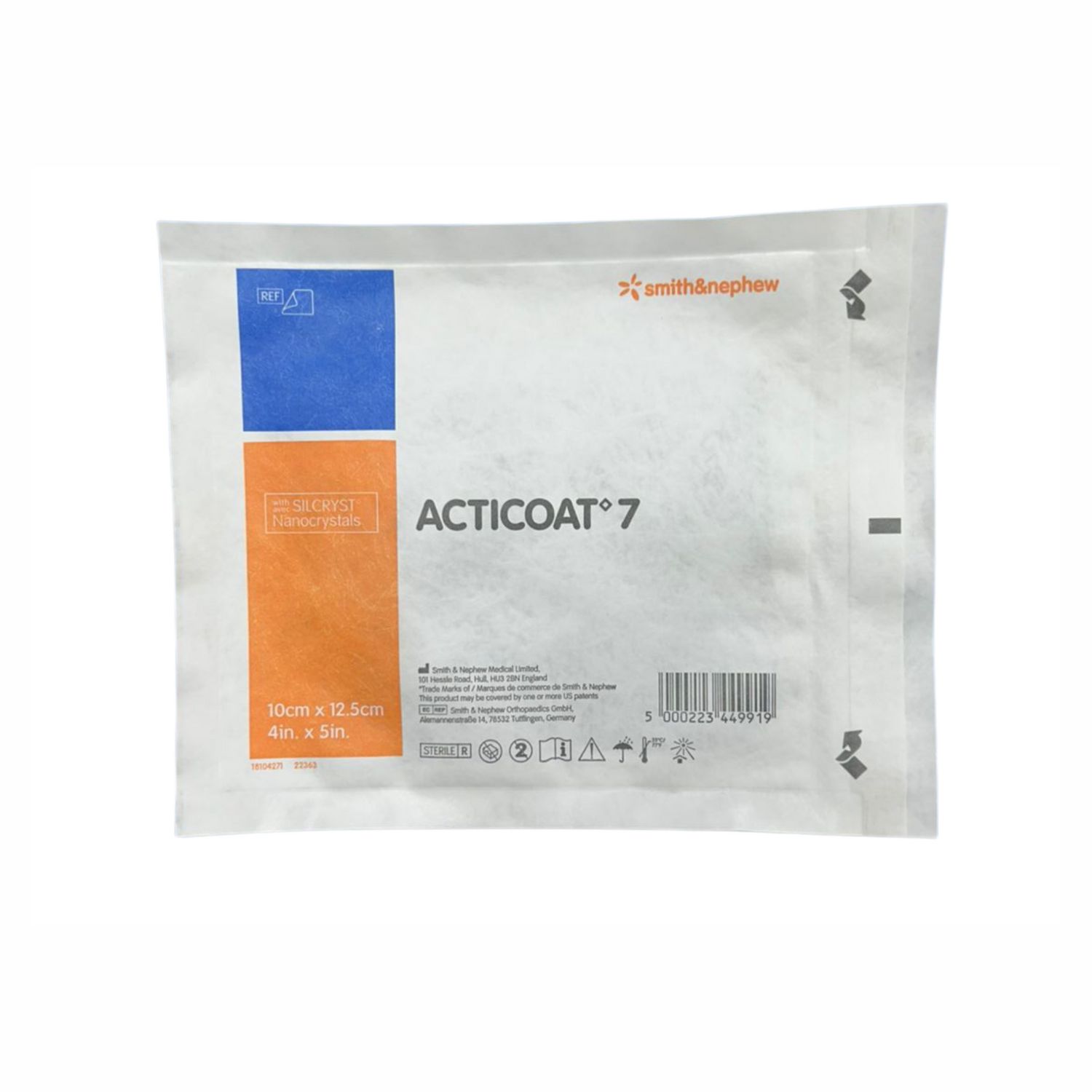EL APÓSITO ACTICOAT COMPUESTO POR PLATA NANOCRISTALINA, ES UNA BARRERA ANTI-MICROBIANA Y LIBERACIÓN SOSTENIDA DE PLATA HASTA POR 7 DÍAS. CUENTA CON 3 CAPAS EXTERNAS DE POLIETILENO DE ALTA DENSIDAD CUBIERTAS CON PLATA.