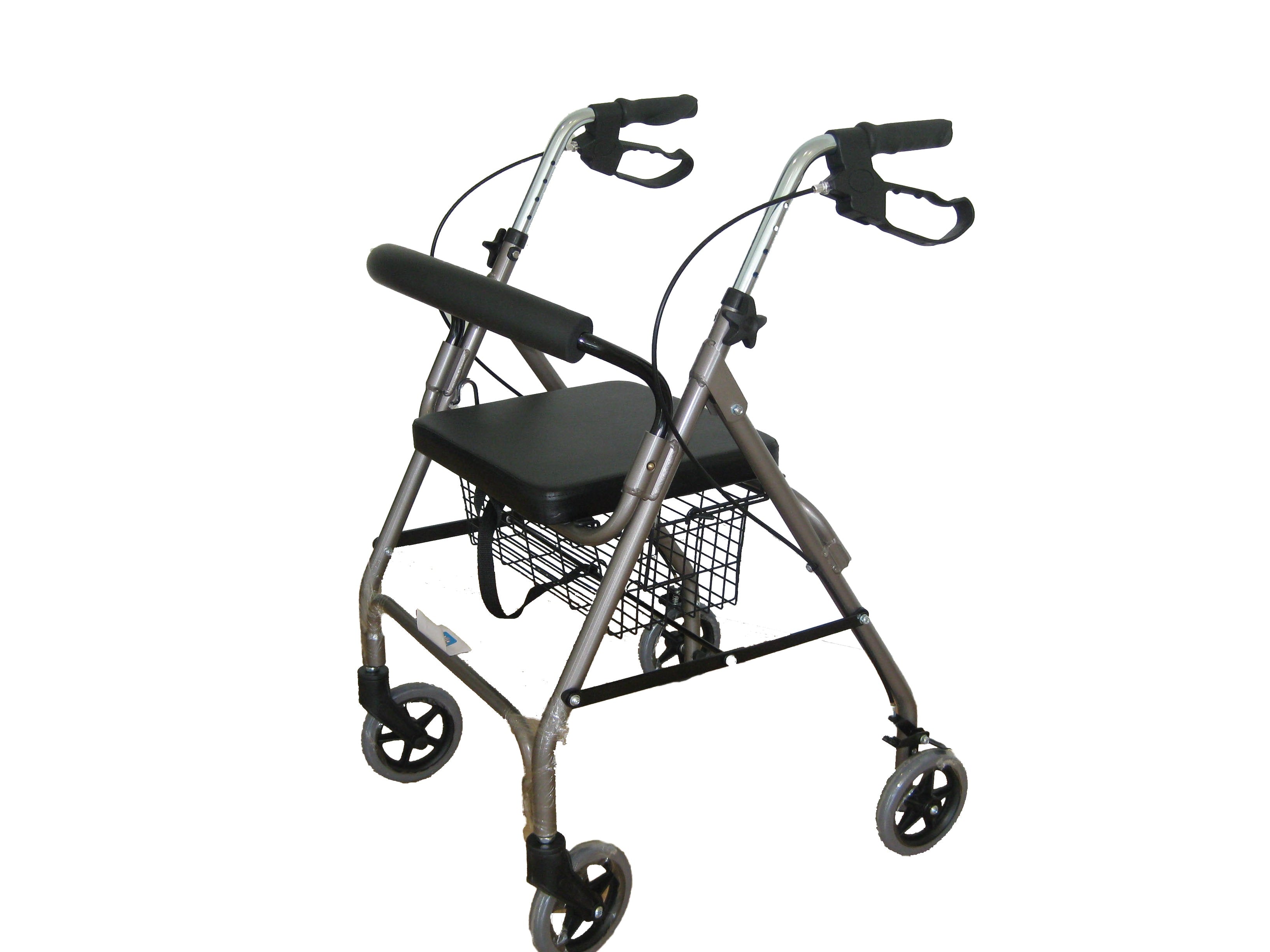 Andadera Rollator plegable-Andadera para adulto, plegable, de aluminio y con frenos en las ruedas traseras.