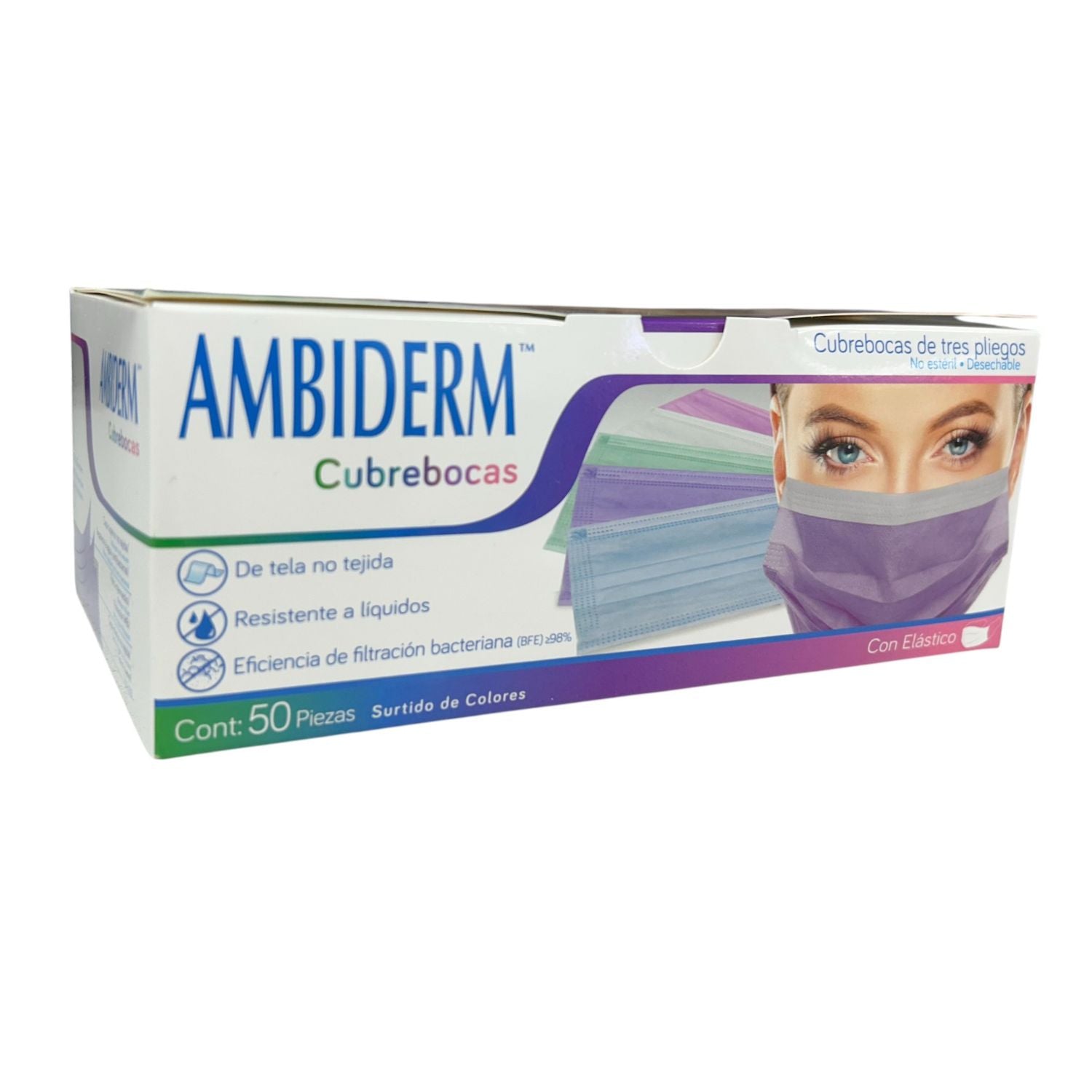Cubrebocas Adulto Tricapa 3 Pliegos Colorfull con Elastico Caja C/50