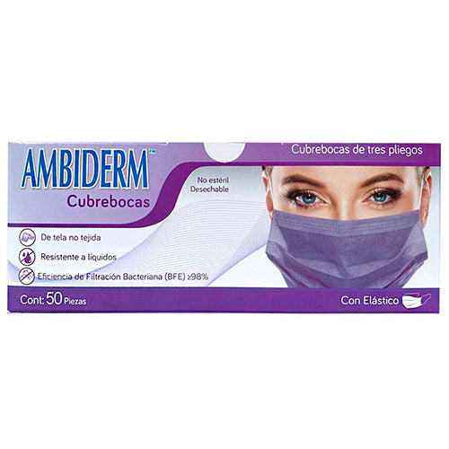 Cubrebocas Adulto Tricapa 3 Pliegos Violeta con Elastico Caja C/50