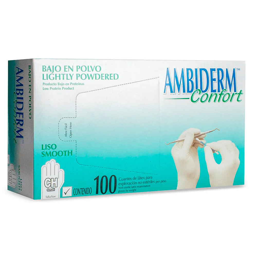 Guante No Esteril Chico Confort Latex Desechable Bajo en Polvo Liso Blanco Caja C/100