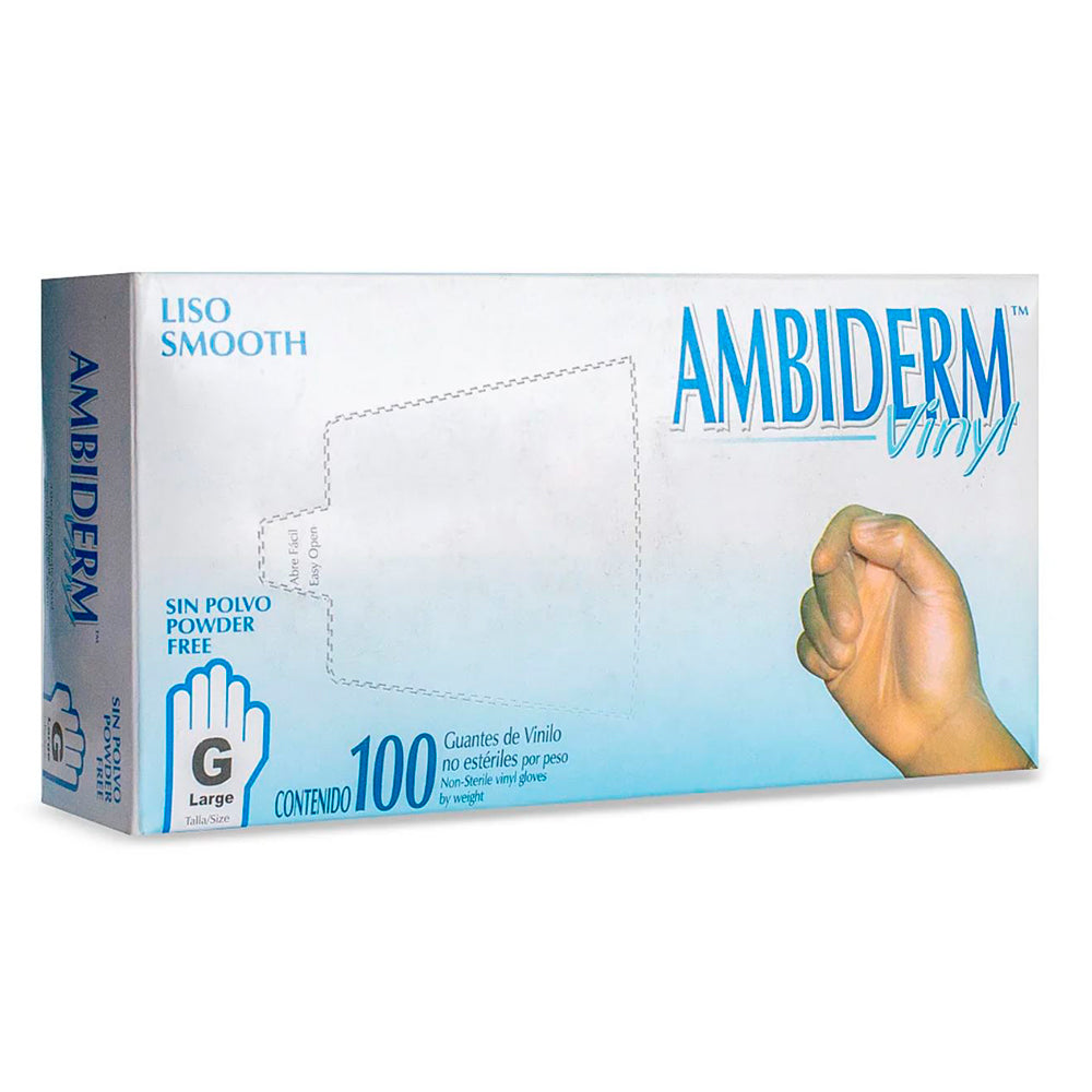 Guante No Esteril Grande Vinyl Libre de Latex Desechable Libre de Polvo Liso Natural Caja C/100