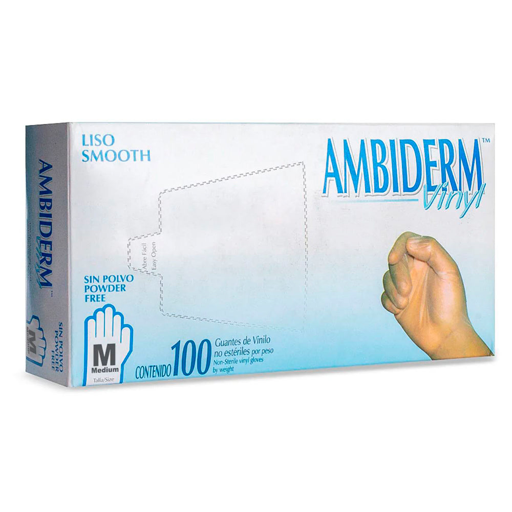 Guante No Esteril Mediano Vinyl Libre de Latex Desechable Libre de Polvo Liso Natural Caja C/100
